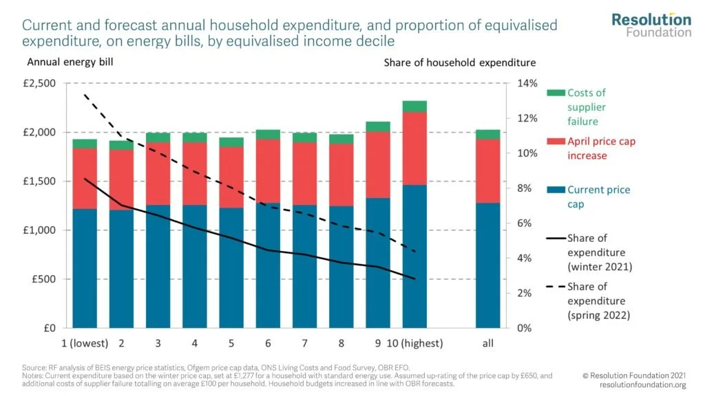 If standard energy bills were to increase to £2,000 a year, the poorest third of households would have to spend at least 10 percent of their income on energy bills alone. Additionally, this third will also suffer most with fuel stress if energy bills continue rising.