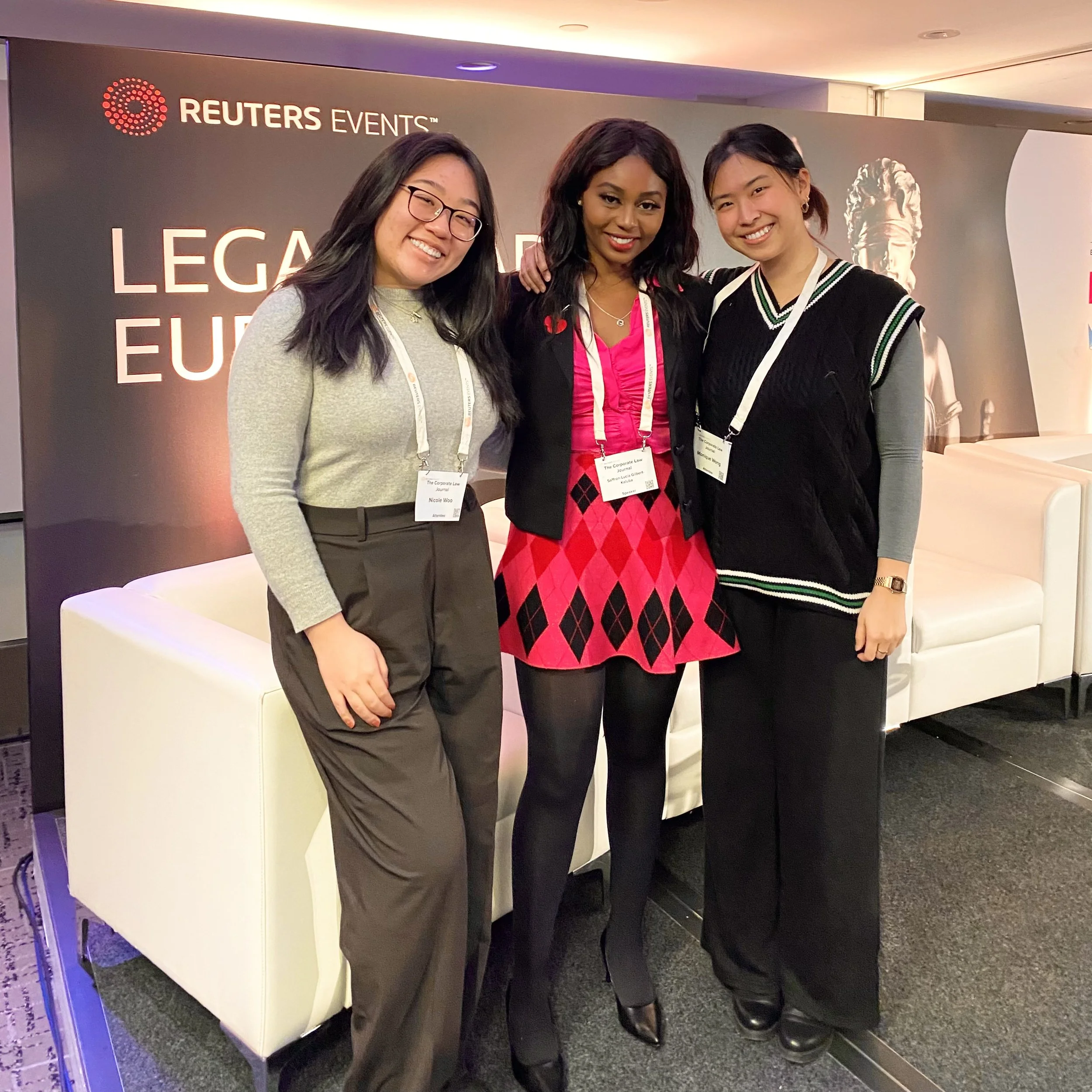 The Corporate Law Journal Team, pictured (from left): Nicole Woo (Technology Editor), Saffron-Lucia Gilbert-Kaluba (The Corporate Law Journal Co-Founder & CEO) and Monique Wong (Chief Brand Officer).